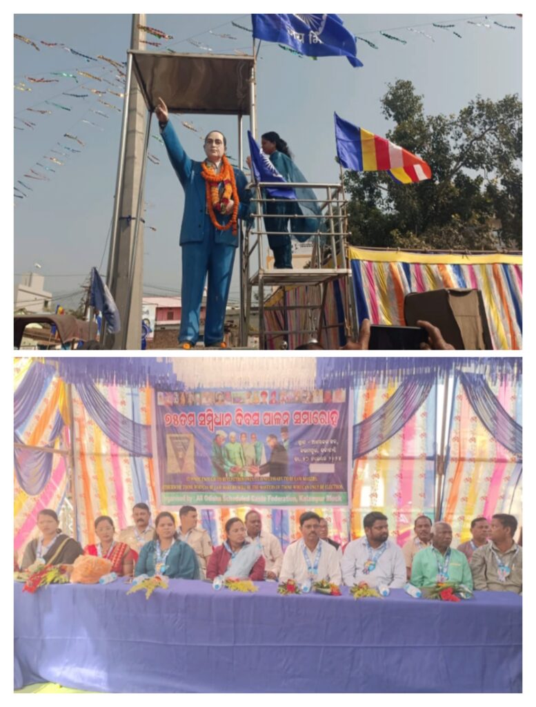 କଲମପୁର,୨୬/୧୧(ଗଣେଶରାମ ବାଗ) କଲମପୁର ବ୍ଲକ ଅଲ ଓଡ଼ିଶା ସିଡୁଲ୍ କାଷ୍ଟ ଫେଡରେଶନ ଆନୁକୁଲ୍ୟରେ ୭୫ତମ ସମ୍ବିଧାନ ଦିବସ କଲମପୁର ମୁଖ୍ୟ ବଜାର ପ୍ରାଙ୍ଗଣରେ ମହାସମାରୋହରେ ପାଳିତ ହୋଇଯାଇଛି। କଲମପୁର ବ୍ଲକ ଅନୁସୂଚିତ ଜାତି ବିକାଶ ପରିଷଦର ସଭାପତି ବଳରାମ ଦୁର୍ଗାଙ୍କ ସଭାପତିତ୍ଵ କାର୍ଯ୍ୟକ୍ରମରେ ଅନୁଷ୍ଠିତ ସଭାରେ ମୁଖ୍ୟ ଅତିଥି ଭାବେ କଲମପୁର ତହସିଲଦାର ସ୍ମରଣିକା ତୁଳ, ମୁଖ୍ୟବକ୍ତା ଭାବେ ଓଏଭି ର ଶିକ୍ଷକ ତ୍ରିନାଥ ବାଗ, ସମ୍ମାନୀୟ ଅତିଥି ଭାବରେ ବ୍ଲକ ଗୋଷ୍ଠୀ ଶିକ୍ଷା ଅଧିକାରିଣୀ ମଧୁସ୍ମିତା ନାଏକ, ଜିଲ୍ଲା ପରିଷଦ ସଭ୍ୟା ନିବେଦିତା ହଂସ ଓ ଦୁହିତା ମାଝୀ, କନିଷ୍ଠ ଯନ୍ତ୍ରୀ ସନ୍ତୋଷ କୁମାର ବେହେରା, ରାଜ୍ୟପାଳ ପୁରସ୍କାର ପ୍ରାପ୍ତ ଶିକ୍ଷକ ସତ୍ୟ ନାରାୟଣ ରାଜପୁତ, ପୂର୍ବତନ ବ୍ଲକ ସଭାପତି କୃଷ୍ଣଚନ୍ଦ୍ର ନିଆଁଲ , କଲମପୁର ଥାନା ସବ୍ଇନିସପେକ୍ତର ଡୋଳାମଣି ବିଶି, ବଡକୁଟ୍ରୁ ଫାଣ୍ଡି ଅଧିକାରୀ ଶିବଶଙ୍କର ମହାନ୍ତି , ହାରାମାଲ ସରପଞ୍ଚ ସୁଶୀଳା ଦୁର୍ଗା, ଅଧ୍ୟାପକ ବିରଞ୍ଚି କୁମାର ମାଝୀ , ରମେଶ ନିଆଲ , ମଙ୍ଗନିଆ ନିଆଲ୍, ସମାଜସେବୀ ଅରୁଣ ଜଗରିଆ ଓ ପ୍ରଶାନ୍ତ କୁମାର ମାଝୀ, କୋକସରା ବ୍ଲକ ସଭାପତି କୈଶିକ ଦୁରିଆ ପ୍ରମୁଖ ମଞ୍ଚାସୀନ ଥିଲେ। ପ୍ରଥମେ ବାବା ସାହେବ ଆମ୍ବେଦକରଙ୍କ ପ୍ରତିମୂର୍ତ୍ତୀରେ ଅତିଥି ମାନେ ମାଲ୍ୟାର୍ପଣ ଓ ଦୀପ ପ୍ରଜଳନ କରି ପଞ୍ଚଶିଲ ପଠନ ସହିତ ସଭାକାର୍ଯ୍ୟ ଆରମ୍ଭ କରାଯାଇଥିଲା। ସମ୍ବିଧାନ ଦେଶର ସମସ୍ତ ନାଗରିକ ସହିତ ଜଳ,ବାୟୁ,ପଶୁ,ପକ୍ଷୀ,ବୃକ୍ଷଳତାକୁ ମଧ୍ୟ ବଞ୍ଚାଇବା ଅଧିକାର ଦେଇଛି, କିନ୍ତୁ କିଛି ଲୋକ ଉଦ୍ଦେଶ୍ୟ ମୂଳକ ଭାବେ ସମ୍ବିଧାନକୁ ଦୋଷ ଦେଇ, ସାମ୍ବିଧାନିକ ଅଧିକାର ପାଇବାରୁ ଦେଶବାସୀଙ୍କୁ ବଞ୍ଚିତ ରଖିଛନ୍ତି ବୋଲି ବକ୍ତାମାନେ ମତବ୍ୟକ୍ତ କରିଥିଲେ। ଠିକ୍ ସେହିଭଳି ଆଦିବାସୀ,ହରିଜନ ମାନଙ୍କ ପ୍ରତି ଜାତି ଧର୍ମ ଭେଦଭାବ ଆଜି ମଧ୍ୟ ଦେଶର ମୂଳ ସମସ୍ୟା ହୋଇଛି ବୋଲି ବକ୍ତାମାନେ କ୍ଷୋଭ ପ୍ରକାଶ କରିବା ସହ ସମ୍ବିଧାନକୁ ସମସ୍ତେ ଅଧ୍ୟୟନ କରି ନିଜର ମୌଳିକ ଅଧିକାର ହାସଲ କରିବା ଓ ସମ୍ବିଧାନ ଦିବସକୁ ଜାତି ଧର୍ମ ବର୍ଣ୍ଣ ନିର୍ବିଶେଷରେ ଦେଶର ସମସ୍ତେ ପାଳନ କରିବା ଜରୁରୀ ବୋଲି କହିଥିଲେ। ସେନାପତି ନାଏକ ମଞ୍ଚ ପରିଚାଳନା କରିଥିବା ବେଳେ ବଳରାମ ଛତ୍ରିଆ ଅତିଥି ପରିଚୟ ପ୍ରଦାନ କରିଥିଲେ । ଚକ୍ରଧର ନାଏକ ଧନ୍ୟବାଦ ଅର୍ପଣ କରିଥିଲେ। ଏହି କାର୍ଯ୍ୟକ୍ରମରେ ଅଞ୍ଚଳର ଶତାଧିକ ସମ୍ବିଧାନ ପ୍ରେମୀ ମହିଳା ପୁରୁଷ ଓ ସ୍କୁଲ କଲେଜର ଛାତ୍ରଛାତ୍ରୀମାନେ ଉପସ୍ଥିତ ରହିଥିଲେ ଓ କାର୍ଯ୍ୟକ୍ରମ ପରିଚାଳନାରେ କଲମପୁର ବ୍ଲକ ଅଲ୍ ଓଡିଶା ସିଡୁଲ କାଷ୍ଟ ଫେଡରେଶନର ସମସ୍ତ କର୍ମକର୍ତ୍ତା ସହଯୋଗ କରିଥିଲେ ।