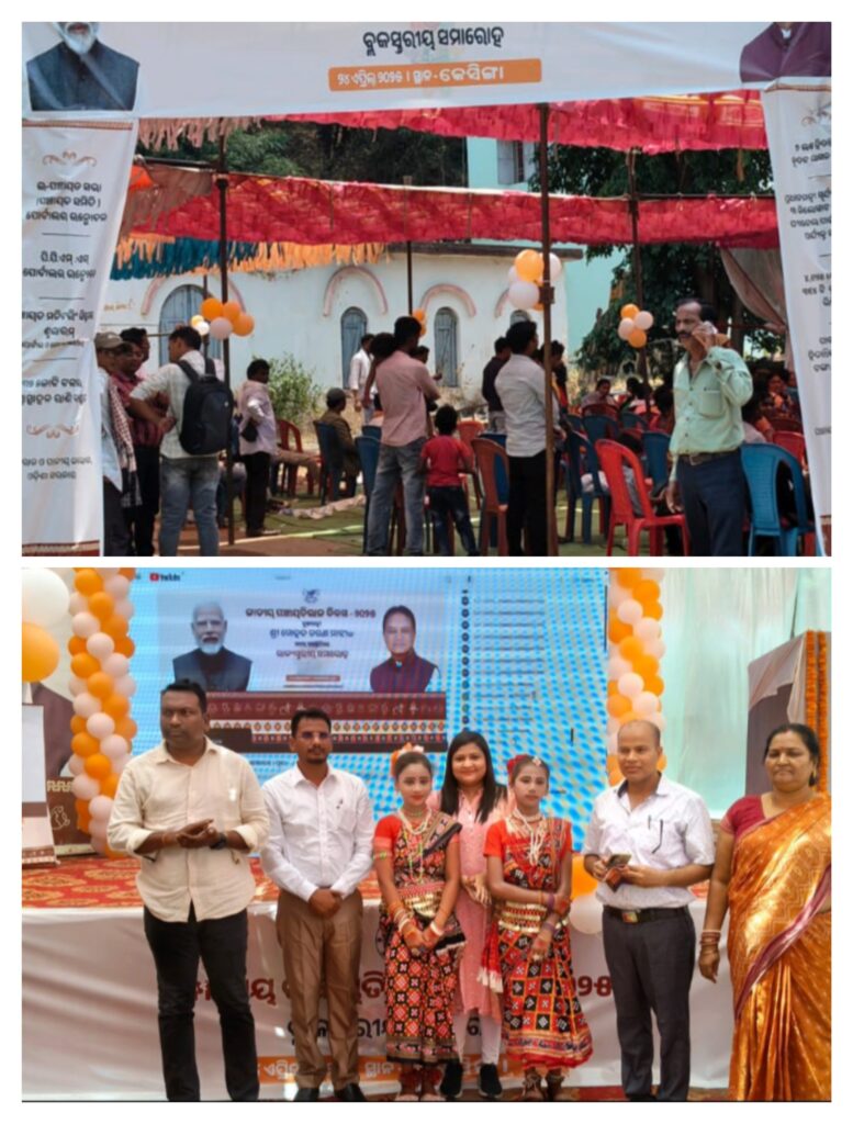 କେସିଙ୍ଗା -୨୪/୪ ଆଜି କଳାହାଣ୍ଡି ଜିଲ୍ଲା କେସିଙ୍ଗା ବ୍ଲକ ପରିସରରେ ଜାତୀୟ ପଞ୍ଚାୟତିରାଜ ଦିବସ ପାଳିତ ହୋଇଯାଇଛି। ଏହି ଉପଲକ୍ଷେ ବିଡିଓ ଜନ୍ମଜେୟ ସ୍ବାଇଁଙ୍କ ପୌରହିତରେ ଆୟୋଜିତ ସଭାରେ ମୁଖ୍ୟ ଅତିଥି ଭାବେ ପଞ୍ଚାୟତ ସମିତି ଅଧ୍ୟକ୍ଷ ଚନ୍ଦନ ସେନାପତି ଯୋଗଦେଇ କାର୍ଯ୍ୟକ୍ରମକୁ ଉଦଘାଟନ କରିଥିଲେ। ଏହି ସଭାରେ ସମ୍ମାନିତ ଅତିଥି ରୂପେ ଏବିଡିଓ ସିଦ୍ଧେଶ୍ବର ମେହେର, ତହସିଲଦାର ପ୍ରଶାନ୍ତି ପ୍ରଧାନ, ସିଡିପିଓ ସସ୍ମିତା ମିଶ୍ର ମଞ୍ଚାସୀନ ଥିଲେ। ଏଥିସହିତ ସମସ୍ତ କନିଷ୍ଠ ଯନ୍ତ୍ରୀ, ଅତିରିକ୍ତ ଖାଦ୍ୟ ଯୋଗାଣ ଅଧିକାରୀ ଓ ମହିଳା ଗ୍ରୁପ ମୁଖ୍ୟ ପ୍ରମୁଖ ଉପସ୍ଥିତ ଥିଲେ। ଶେଷରେ ବିଭିନ୍ନ ପ୍ରତିଯୋଗିତାରେ ଅଂଶ ଗ୍ରହଣ କରିଥିବା କୣତୀ ପ୍ରତିଯୋଗୀମାନଙ୍କୁ ପଞ୍ଚାୟତ ସମିତି ଅଧ୍ୟକ୍ଷ ଶ୍ରୀ ସେନାପତି ପୁରସ୍କାର ବିତରଣ କରିଥିଲେ। ସ୍କୁଲର ଛାତ୍ରୀମାନେ ପ୍ରାରମ୍ଭିକ ସଙ୍ଗାତ ପରିବେଷଣ କରିଥିଲା ବେଳେ ଅନ୍ୟ ଛାତ୍ରୀମାନେ ବିଭିନ୍ନ ସାଂସ୍କୃତିକ କାର୍ଯ୍ୟମାନ ପରିବେଷଣ କରିଥିଲେ। ଏହି କାର୍ଯ୍ୟକ୍ରମକୁ ବ୍ଲକ ହିସାବରକ୍ଷକ ବିନାୟକ ବିଶ୍ବାଳ ପରିଚାଳନା କରିବା ସହ ଧନ୍ୟବାଦ ଦେଇଥିଲେ। ଶେଷରେ ପୁରୀ ବେଳାଭୂମିରୁ ମାନ୍ୟବର ମୁଖ୍ୟମନ୍ତ୍ରୀ ମୋହନ ଚରଣ ମାଝୀ ଭିଡିଓ କନଫରେନ୍ସିଂ ମାଧ୍ୟମରେ ଜାତୀୟ ପଞ୍ଚାୟତିରାଜ ଦିବସକୁ ଉଦଘାଟନ କରିଥିଲେ।